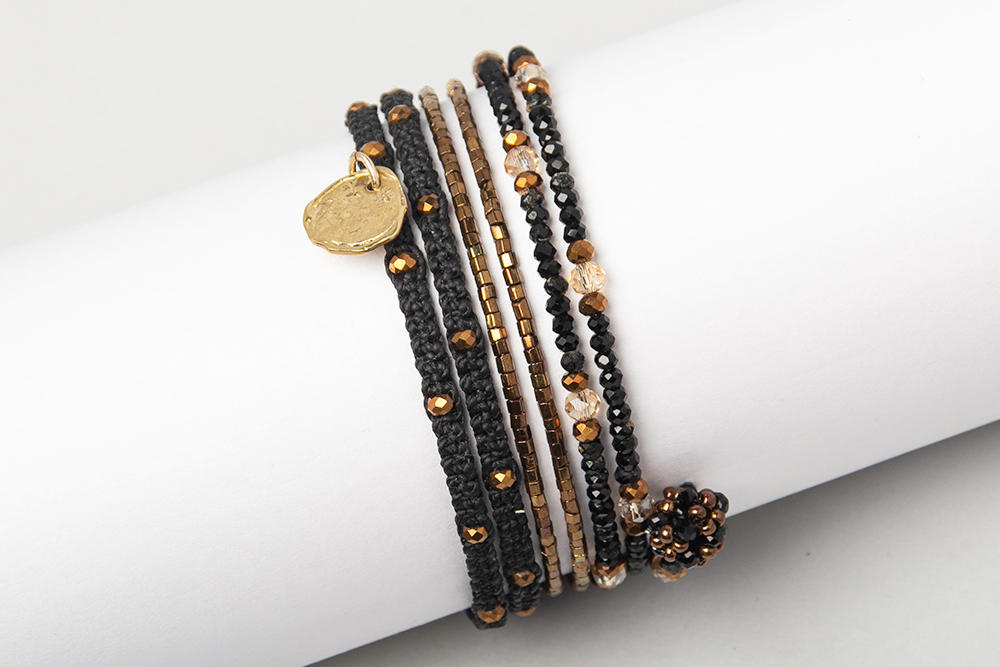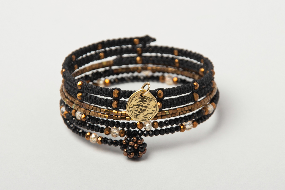 Pulsera rígida en tonos negros y cobre con medalla bronce