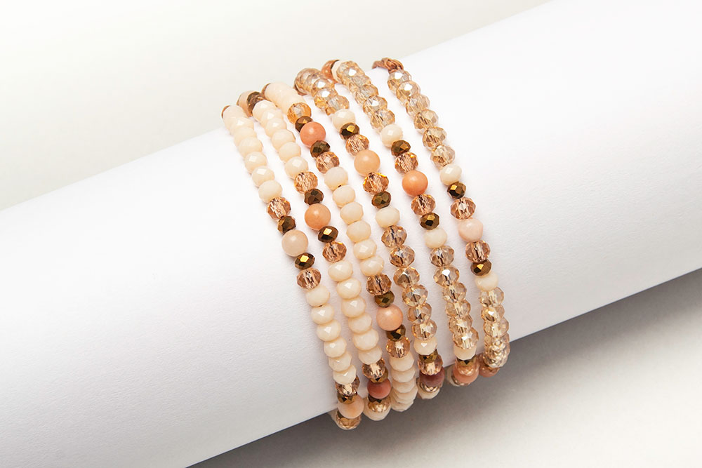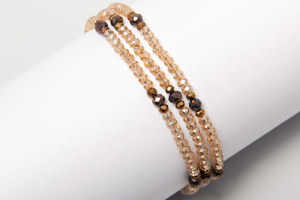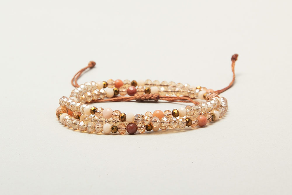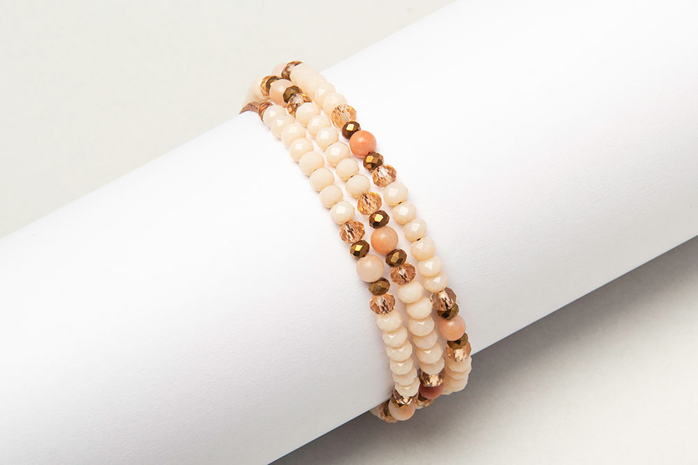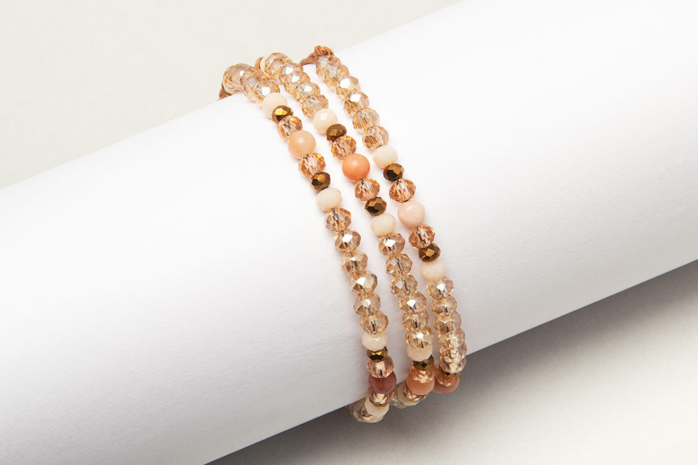 Pulseras de tres vueltas de cristales y detalles en donas de agatas!