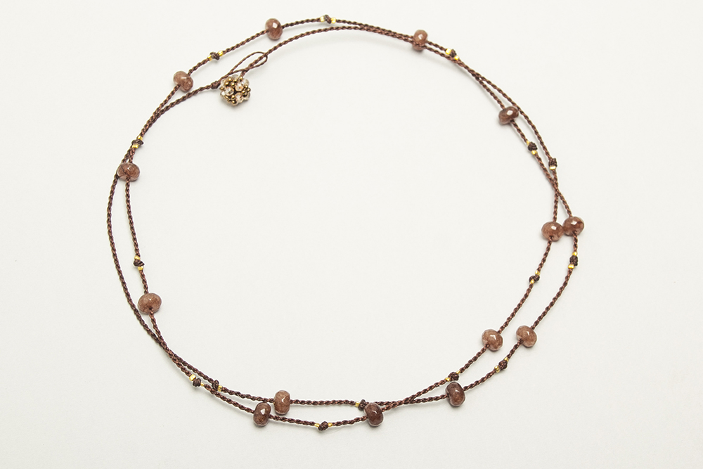 Collar de agatas con bolitas de acero bañadas en oro 24 k.