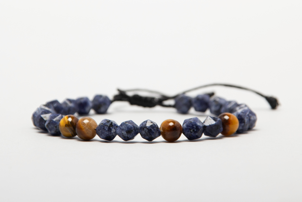 Pulsera en hilo encerado hecha en macramé en piedra sodalita y ojo de tigre