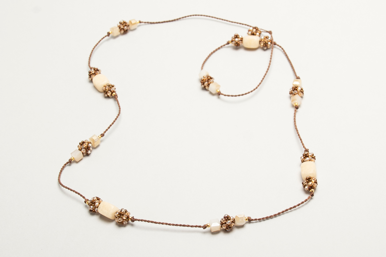 Collar hecho en macrame con piedras y cristales tejidos