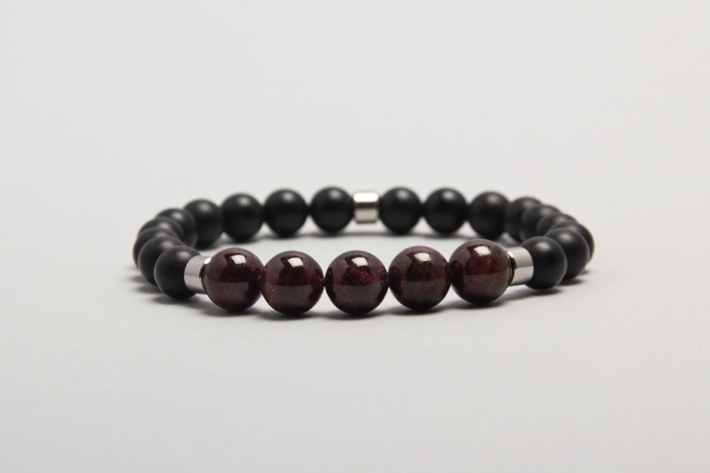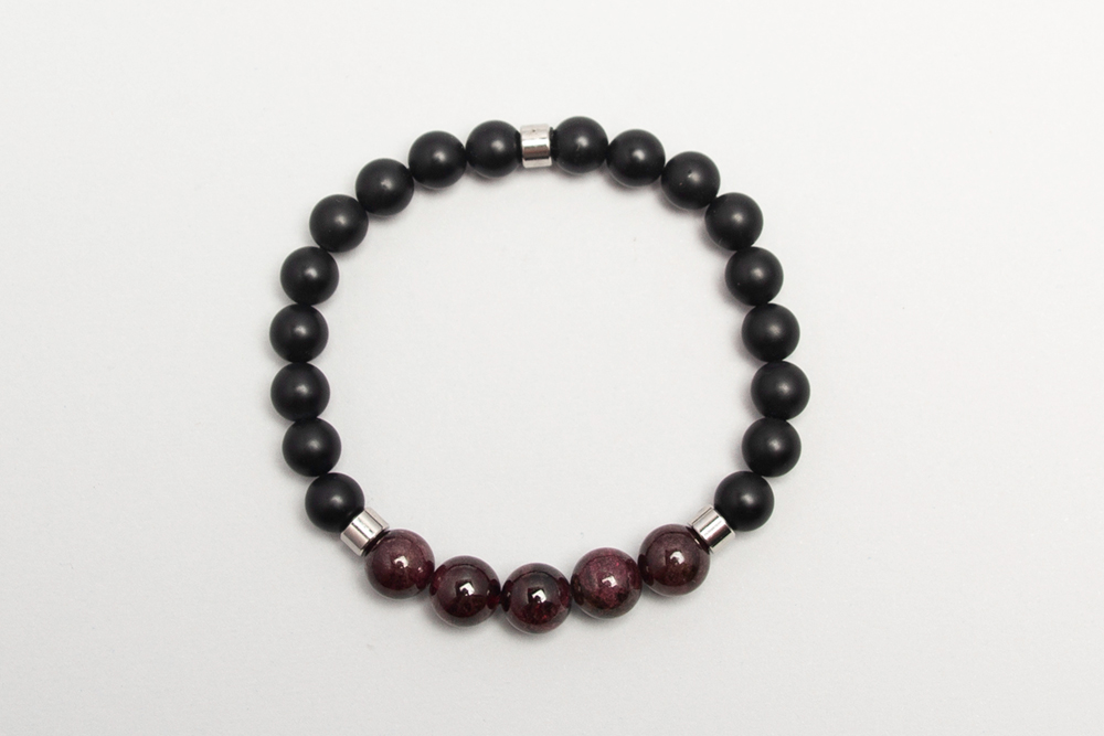 Pulsera con granate y onix opaco con separadores de acero quirúrgico