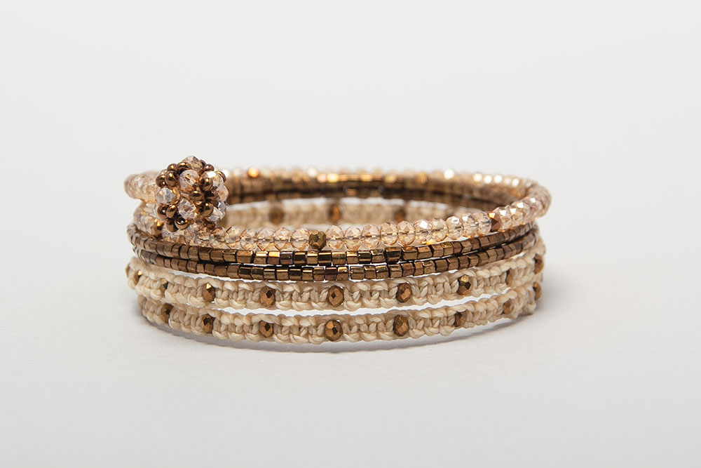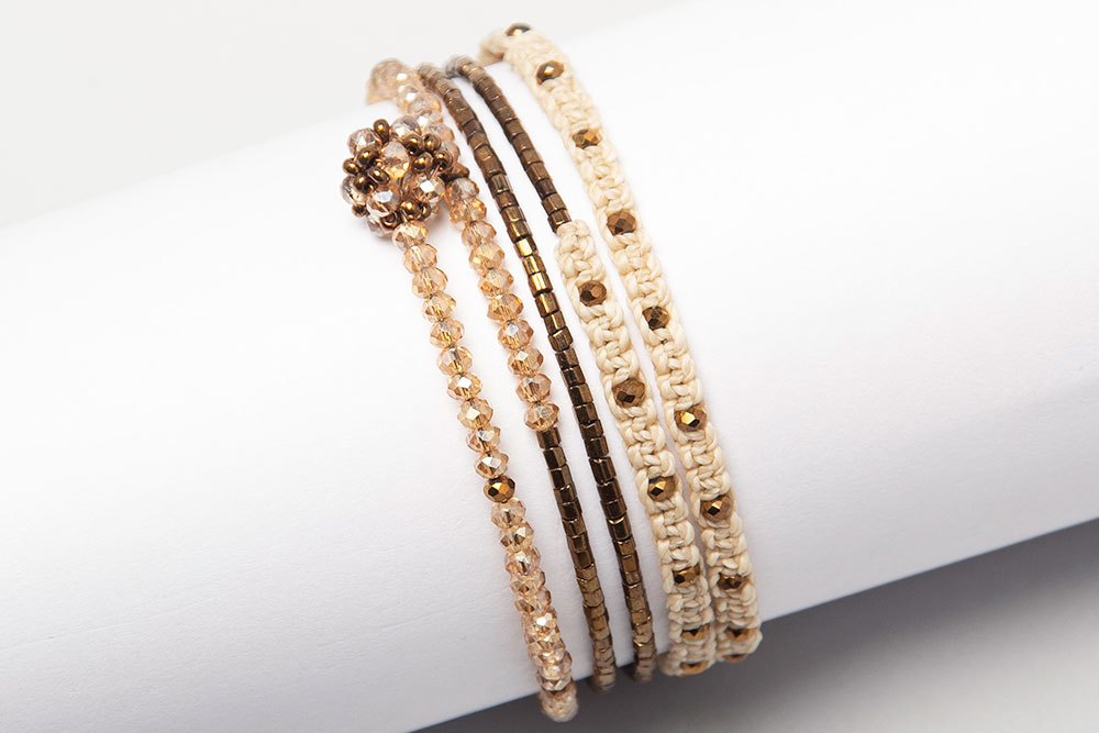 Pulsera rígida en macramé y cristales