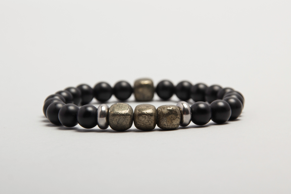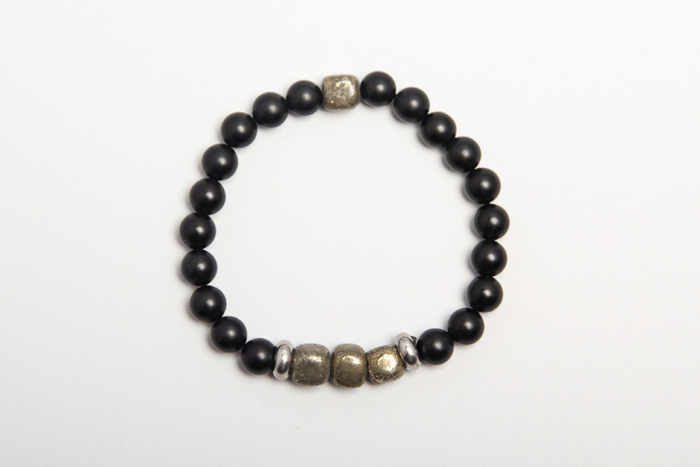 Pulsera con piedras grises, onix opacos y separadores de acero quirúrgico
