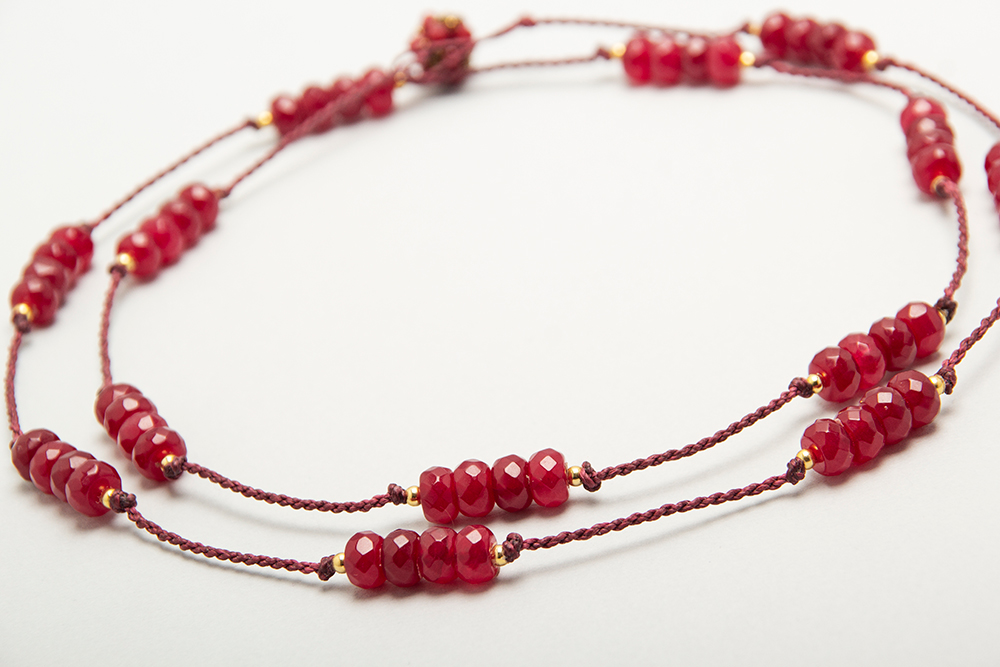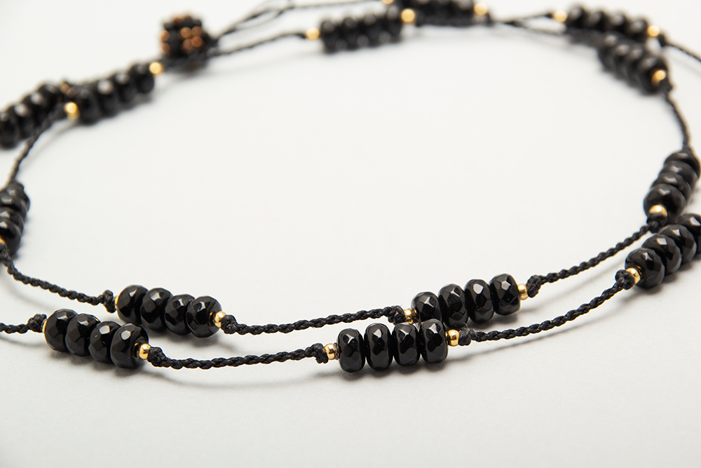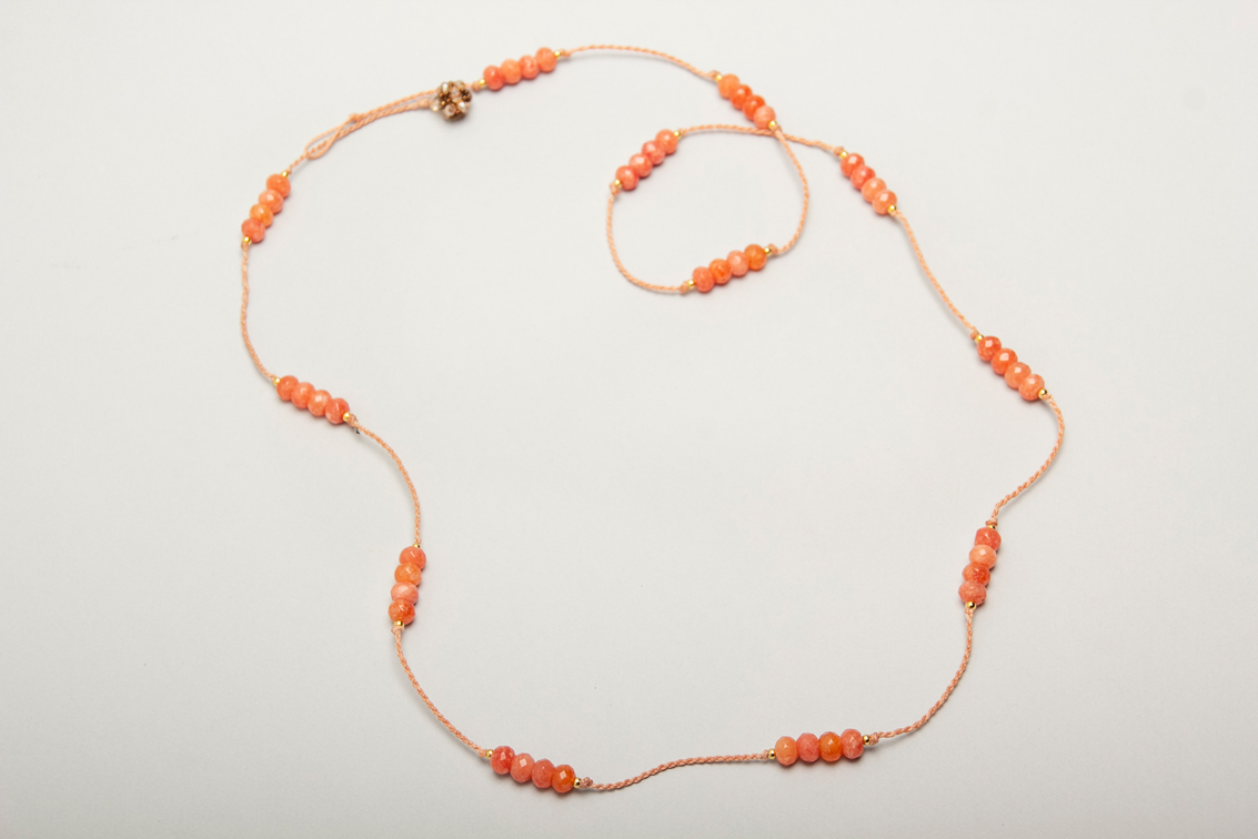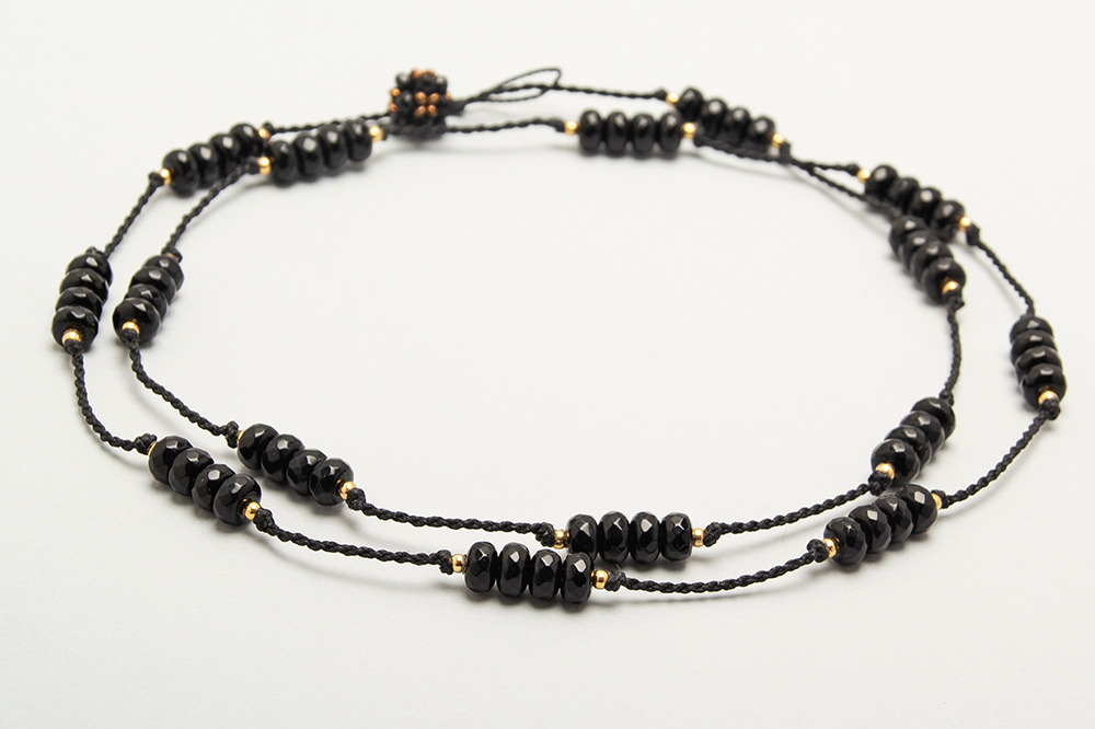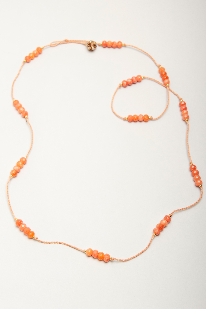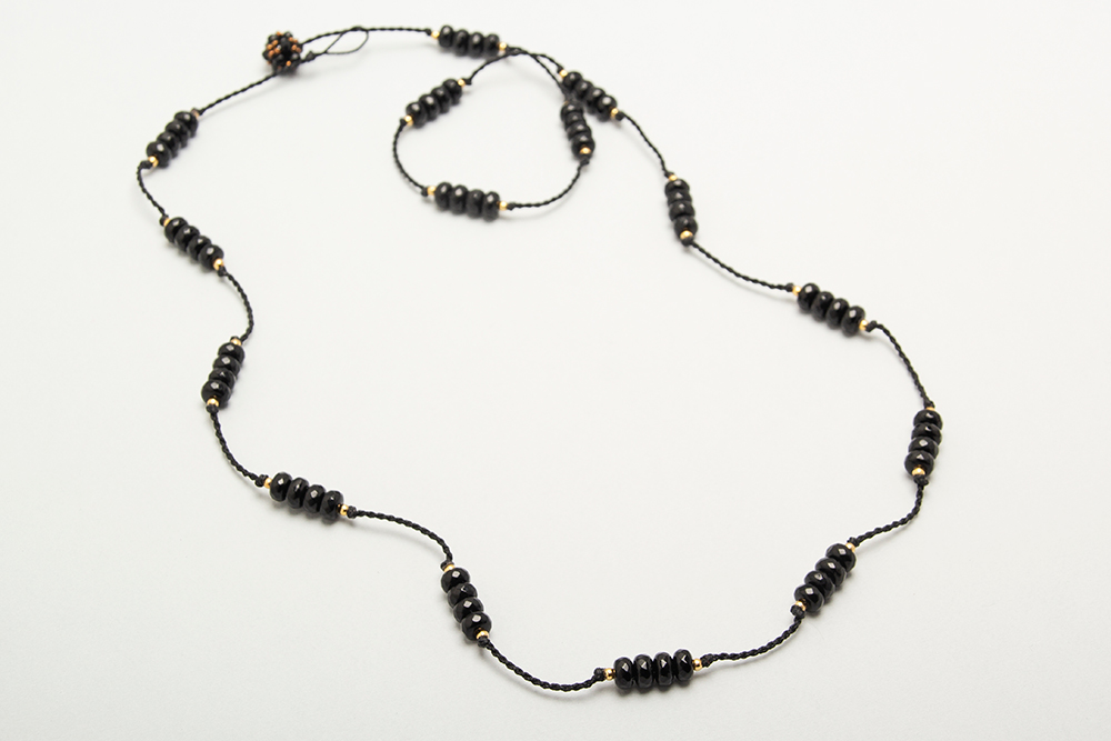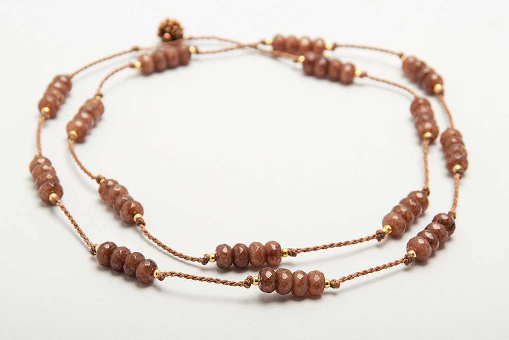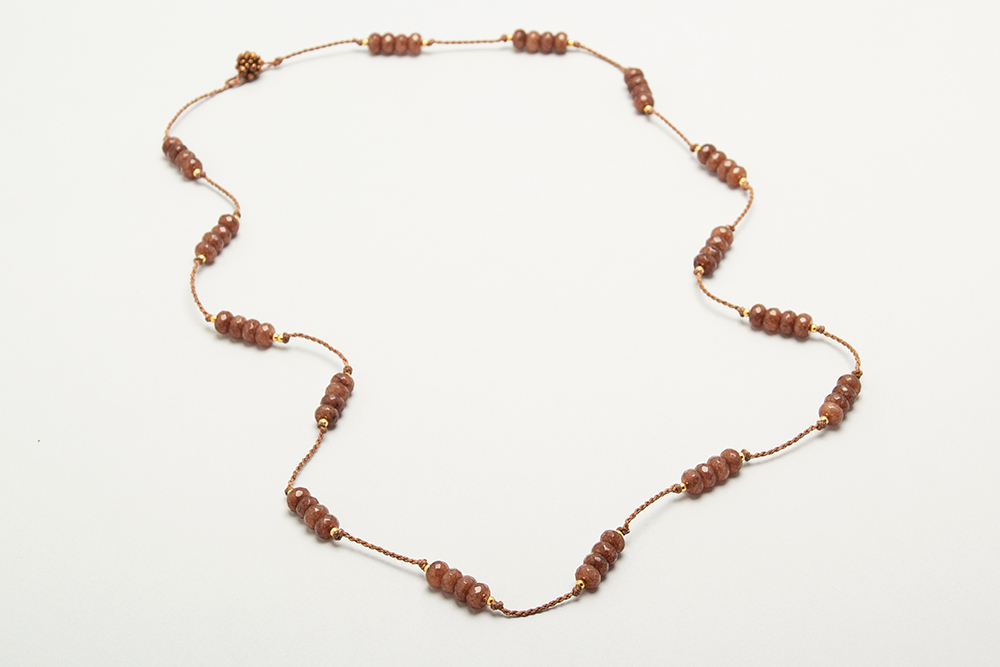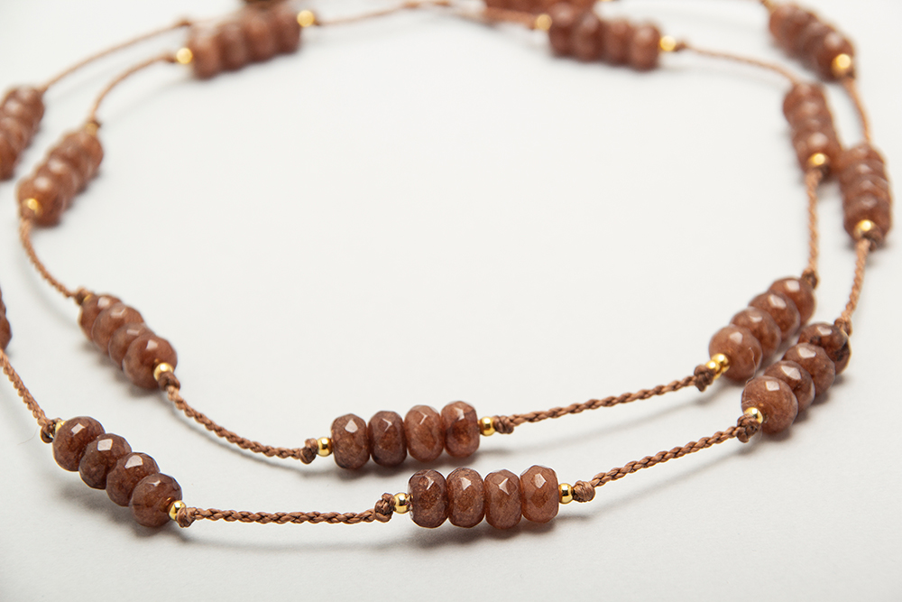 Collar largo de agatas con detalles en acero bañado en oro
