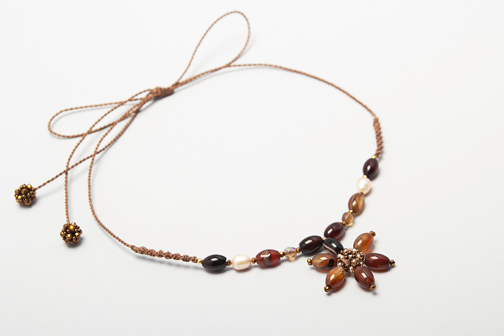 Gargantilla de quarzos y cristales checos con flor divina central, hecha en macrame