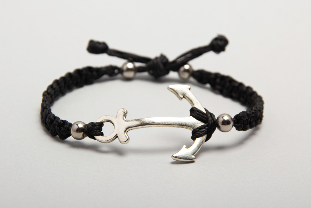 Pulsera hecha en macramé con dije de ancla y detalles en acero quirúrgico