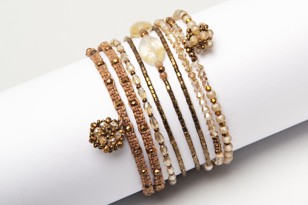 Pulsera rigida de quarzos, cristales y detalles en macrame