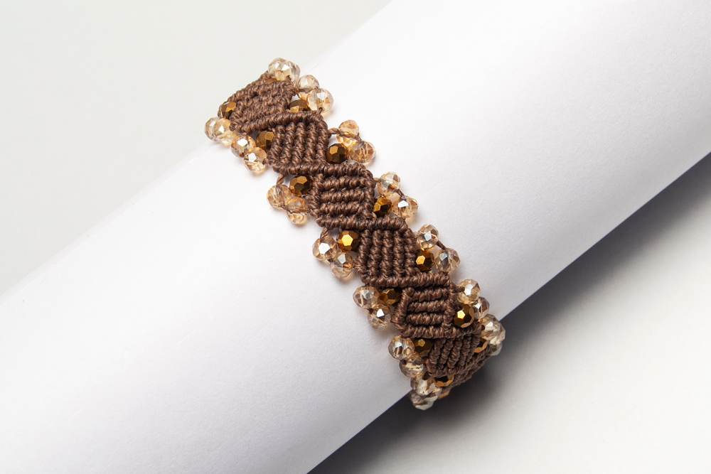 Pulsera tejida en hilo encerado y cristales.